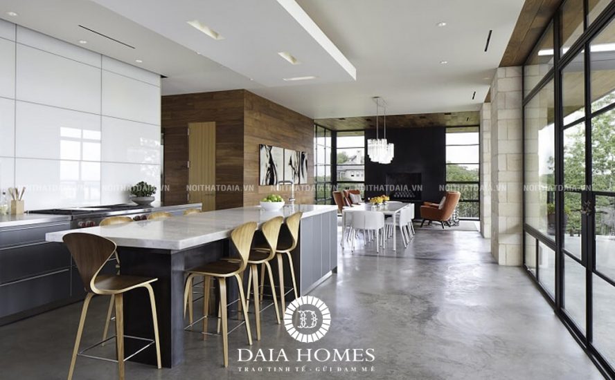 Mẫu nội thất nhà bếp đẹp hiện đại được thiết kế rộng rãi