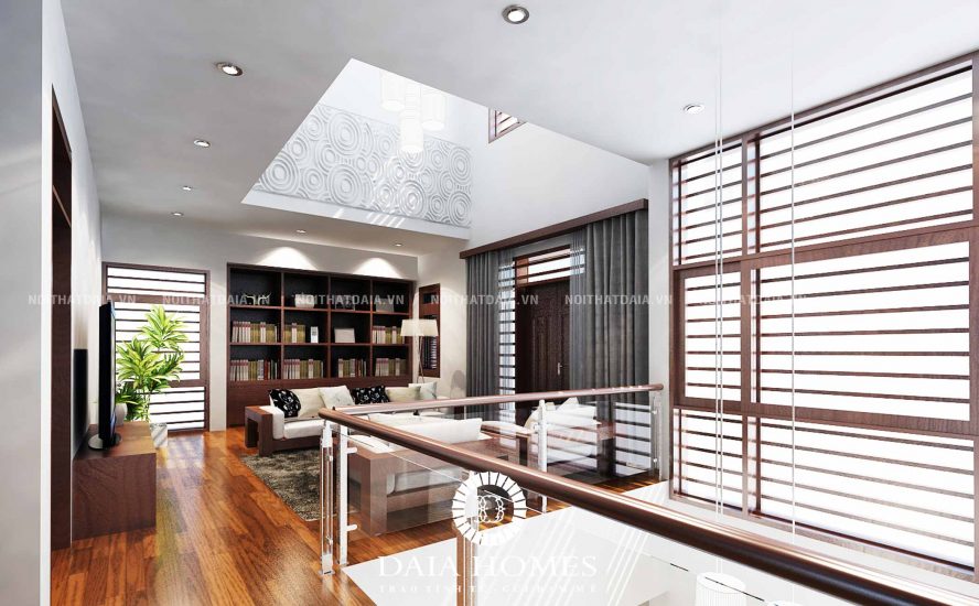 Thiết kế nội thất phòng khách hiện đại đẹp với trần cao
