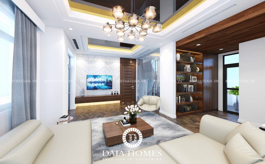 Phòng khách biệt thự mang phong cách hiện đại và sang trọng.